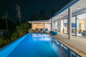 Welcome to Villa Ayana, a stunning villa with sea view in Koh Samui, located in the peaceful hills of Chaweng Noi, only 1 km from the beach. With three bedrooms and three bathrooms, this elegant property offers the perfect balance of comfort, privacy, and tropical charm. Whether you are traveling with family or friends, Villa Ayana promises a relaxing and unforgettable experience.